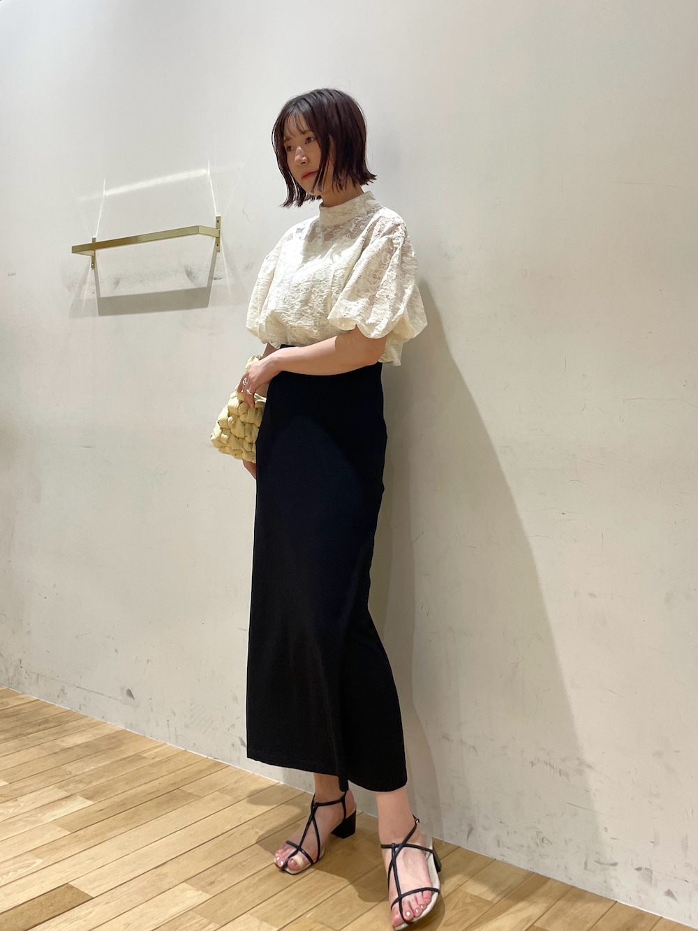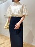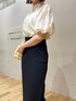 ●キレイめモノトーン 🌙 【Tops】透け感もあるレース素材なので涼しく着れました🍃 肩の内側から袖が出ているので肩幅が広く見えることもないです😌 【Skirt】伸縮性抜群で洗濯もできる万能スカート🌿 168cm / Sサイズで足首が見える着丈!ウエストが全面ゴムでゆったりとしているのでSでぴったりでした!! 網目の細かいニット地なのでブラウス×パンプスでもカジュアルでも◎