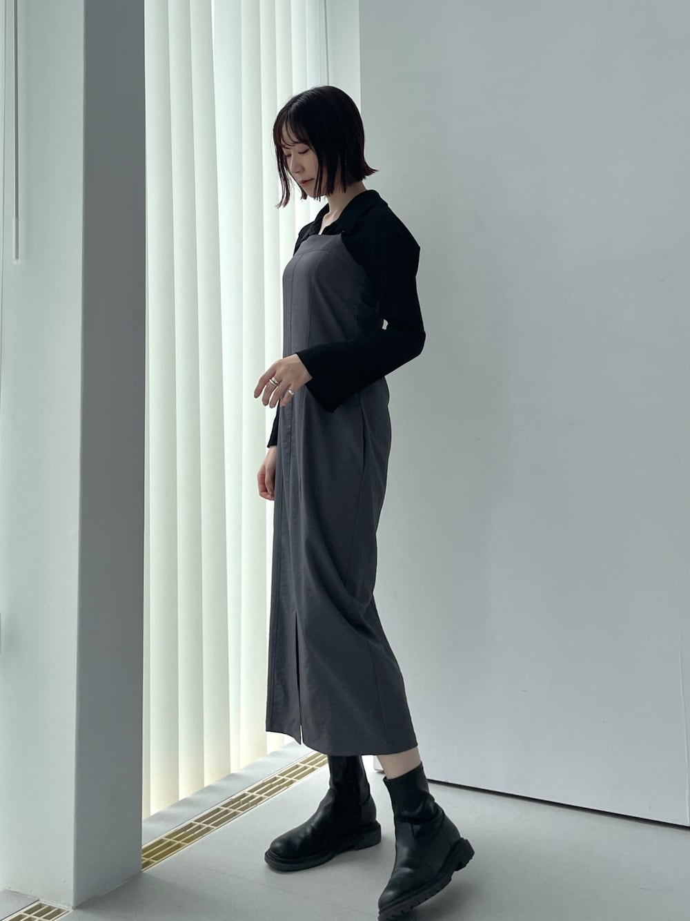 ●SET item着回し♡ 【Dress】グレーのキャミワンピースとショート丈のシアーシャツがセットになったお得なアイテム🩶 セットのシアーシャツをインナーとして着ると肌見せが少なくなって更に上品✔️ インナーをニットに変えても◎ キャミワンピースはデコルテが開いている&ストンと落ちるタイトシルエットなので体型問わず着痩せ効果抜群!! 着丈はアジャスターで調節可能◯ 168cm / Sサイズ→足首上なので長めが好きな方はMサイズがおすすめです!