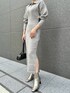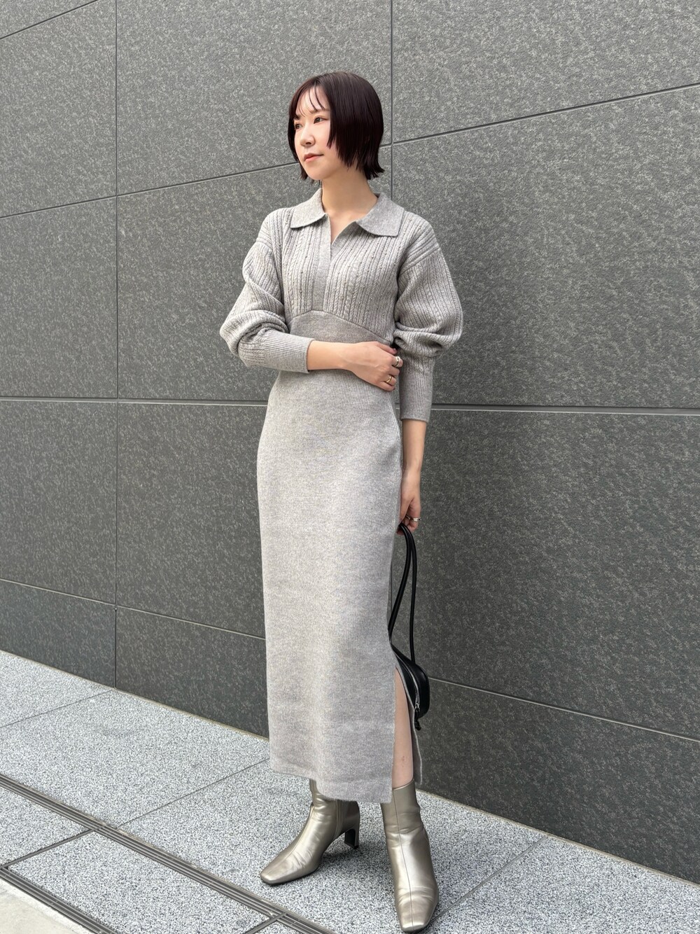 【Dress】さりげないビジューが大人可愛いニットワンピース🩶 ウエスト位置が高くタイトなシルエットなので細見え効果抜群◎ チクチクしないニット素材で二の腕もぴったりしないです! Mサイズは着丈が長めで足首下なので高身長さんにはMサイズをおすすめします✔️
