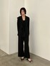 【Outer】モダンでかっこいい主役級ジャケット🖤 アシンメトリーなフリルが大人可愛い! 同素材のパンツと着用するとフォーマルなセットアップになりお呼ばれのシーンにもおすすめです ♡ さらっと軽い着心地なのでタンクトップとデニムで春先の羽織りとしても着れそう🌿 【Pants】シンプルなストレートパンツ。168cm/ Fで着丈もしっかり長めなのでヒール低めでも脚長効果抜群です! 前後センタープレス入りでしっかり綺麗見えします◎