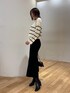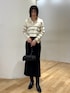 【Tops】ショート丈のZIPニット細ボーダーなのでカジュアルになりすぎずに着れました♡ ショート丈なのでスカートやパンツにインしなくても脚長効果抜群◎ スカートと同素材なので合わせて着るとよりまとまった印象になります✔️ 【Skirt】女性らしくキレイに着れるマーメイドスカート 🔍 伸縮性がありかなり歩きやすくオフィスカジュアルとしてもおすすめです。 168cm / Fで足首が見える着丈です!