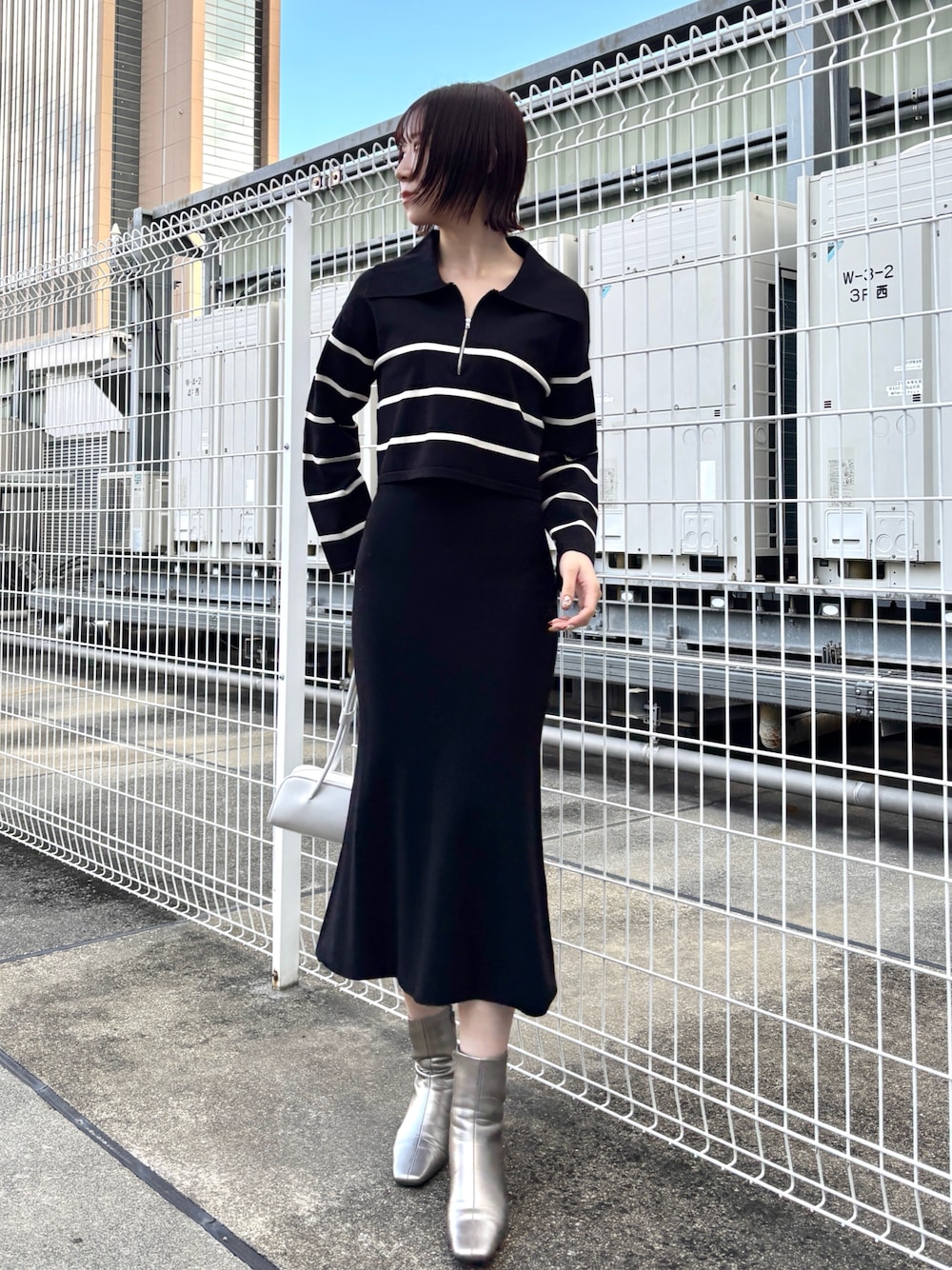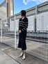 【Tops】細ボーダーなのでカジュアルになりすぎずに着れるニットです✨ ショート丈なので脚長効果も抜群◎ スカートと同素材なので合わせるとセットアップ風にもなります✔️ 【Skirt】女性らしくキレイに着れるマーメイドスカート 🔍 伸縮性がありかなり歩きやすくオフィスカジュアルとしてもおすすめです。 168cm / Fで足首が見える着丈です!