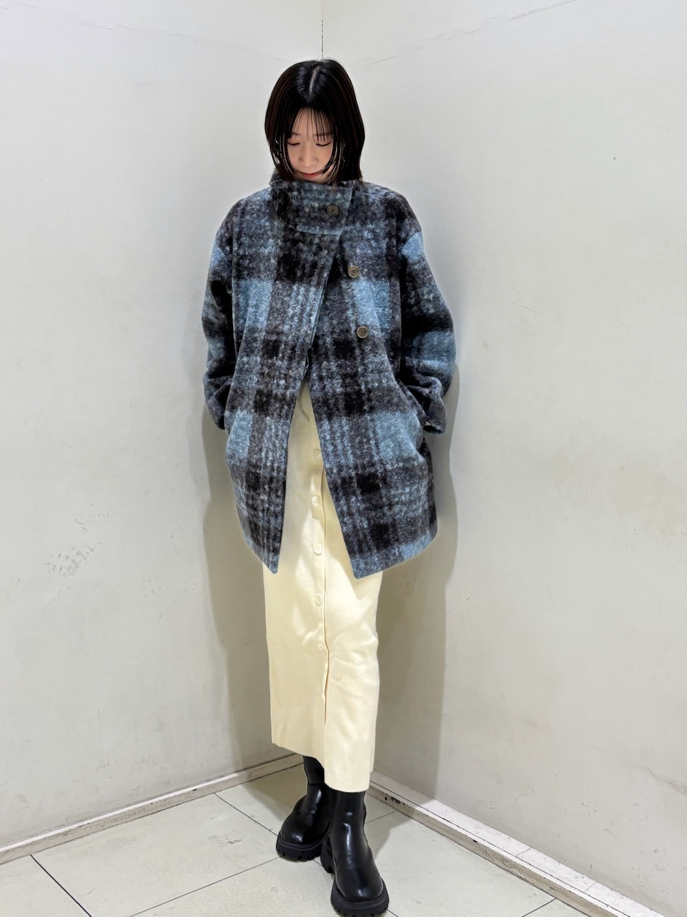 【Outer】スタンドカラーにもなるボアコート🩵 こちらの色味だけ柄入りで大盤のチェック柄が大人可愛い!! 裏地が入っているので風も通さずに暖かく着ていただけます◎ 【Dress】ウエスト位置が高くタイトなシルエットの細見えワンピース🤍 ショート丈のチュールトップは取り外し可能なので外すとシンプルなワンピースとしても着れます🍃 168cm S→足首上の着丈 M→着丈長めなので足首下で着れます!