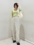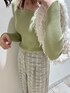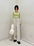 【Tops】モチモチリブニット♡ デコルテが開いたデザインなのでジャンパースカートなどのインナーにも最適◎ 春はシンプルにデニムで合わせても可愛いグリーンがおすすめです🌿 【Pants】ツイード生地の遊び心あるパンツ🤍 フロントZIPの為着替えやすく後ろ側がゴムになっているのでかなり楽に着れました✨ 168cm → Mで踵の隠れる着丈です!丈長めなので高身長の方にはMサイズがおすすめ!(Sは通常丈)