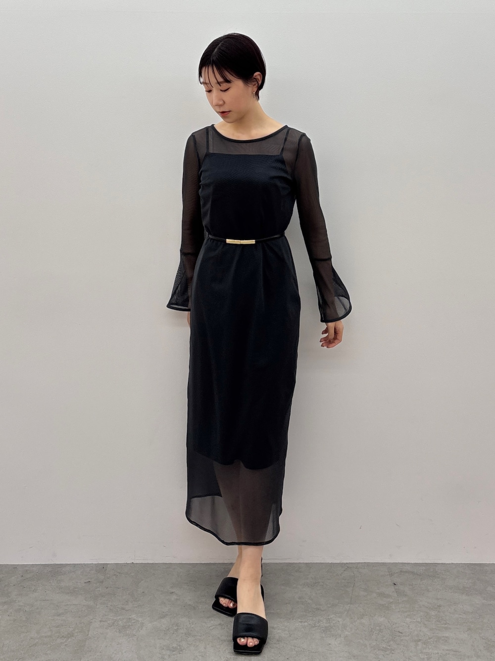 【Dress】 透け感が大人可愛いワンピース♥ シアー素材と袖のフレアが上品なのでお食事やお呼ばれにもおすすめです✨ 柔らかいメッシュ素材で伸縮性と通気性も優秀✔️ 168cm→Sサイズで足首上くらいの着丈です!