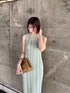 【Dress】1枚でも映えるデザインワンピ♡♡ L.GRNはお肌が白く見えるので特にお気に入り 🌿 立体的なニット生地なので体のラインも拾いすぎず羽織次第でロングシーズン着回し可能◎ 168cm→Sサイズで足首上くらいの着丈で腰回りもぴったり! →Mサイズで腰周り少しゆったり楽に着れ着丈も足首下でした!!