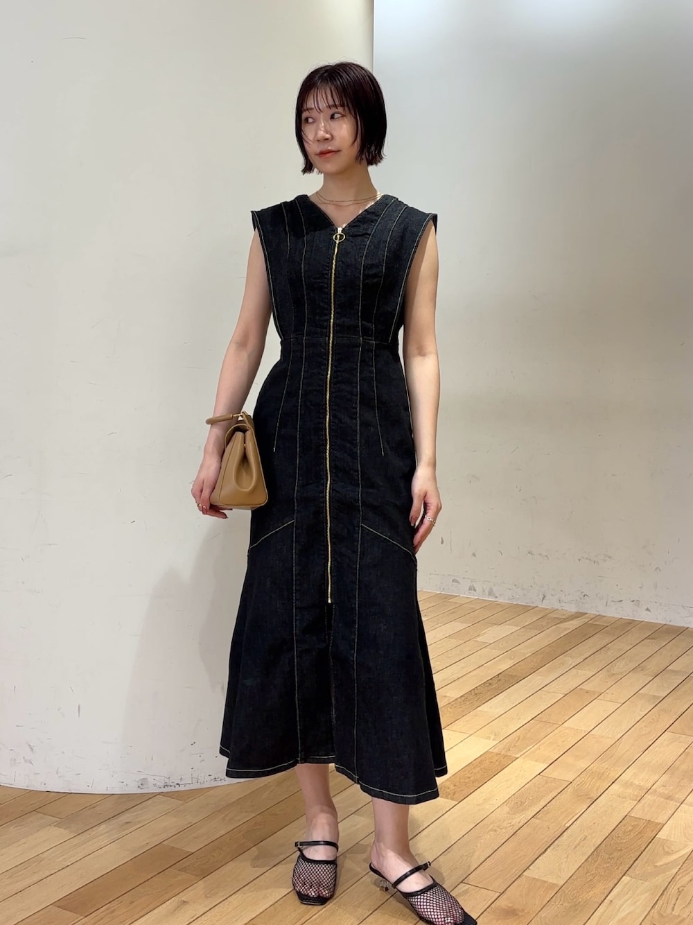 【Dress】人気のデザインがLeeコラボで登場👖 前ZIPなので着脱しやすく、二の腕も細見えするデザインなので1枚で可愛い 🖤 168cm/Mサイズで足首上、ウエストは後ろのベルトで調節できるので締め付け間ゼロでした!!