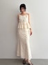 【Tops】夏にぴったりのキャミトップス🤍 遊び心のあるカットジャガードでスカートと合わせるとワンピースみたいになります✨ インナーにノースリーブニットやTシャツを合わせても◯ 【Skirt】キャミトップスと同じ素材のスカート🕯️マーメイドシルエットでSサイズは足首下の着丈、Mサイズは踵くらいの着丈でウエストはゆったりめでした!