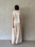 【Tops】夏らしい白ブラウス🤍 薄手のブラウスなので真夏も涼しく、前開きなのでインせず着ていただいても ◎ 【Pants】さらっと履けるサテンパンツ♥ ワイドなシルエットなので腰回りも高カバー ◎ 168cm / Sで踵にかかるくらいの着丈でウエストは調節できるのでぴったり! パンツは裾上げの時間に余裕をもっての購入がおすすめです!