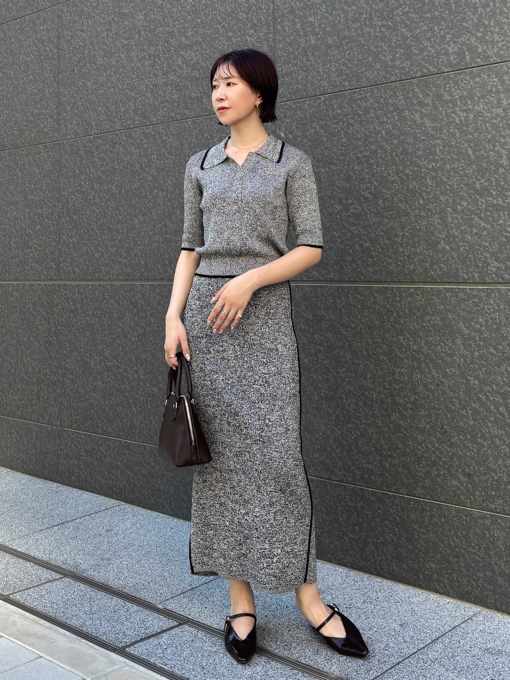 MASAKI KISE(LAGUNAMOON)のワンピース「ポロニットプル×スカートセットアップ」を使ったコーディネート
