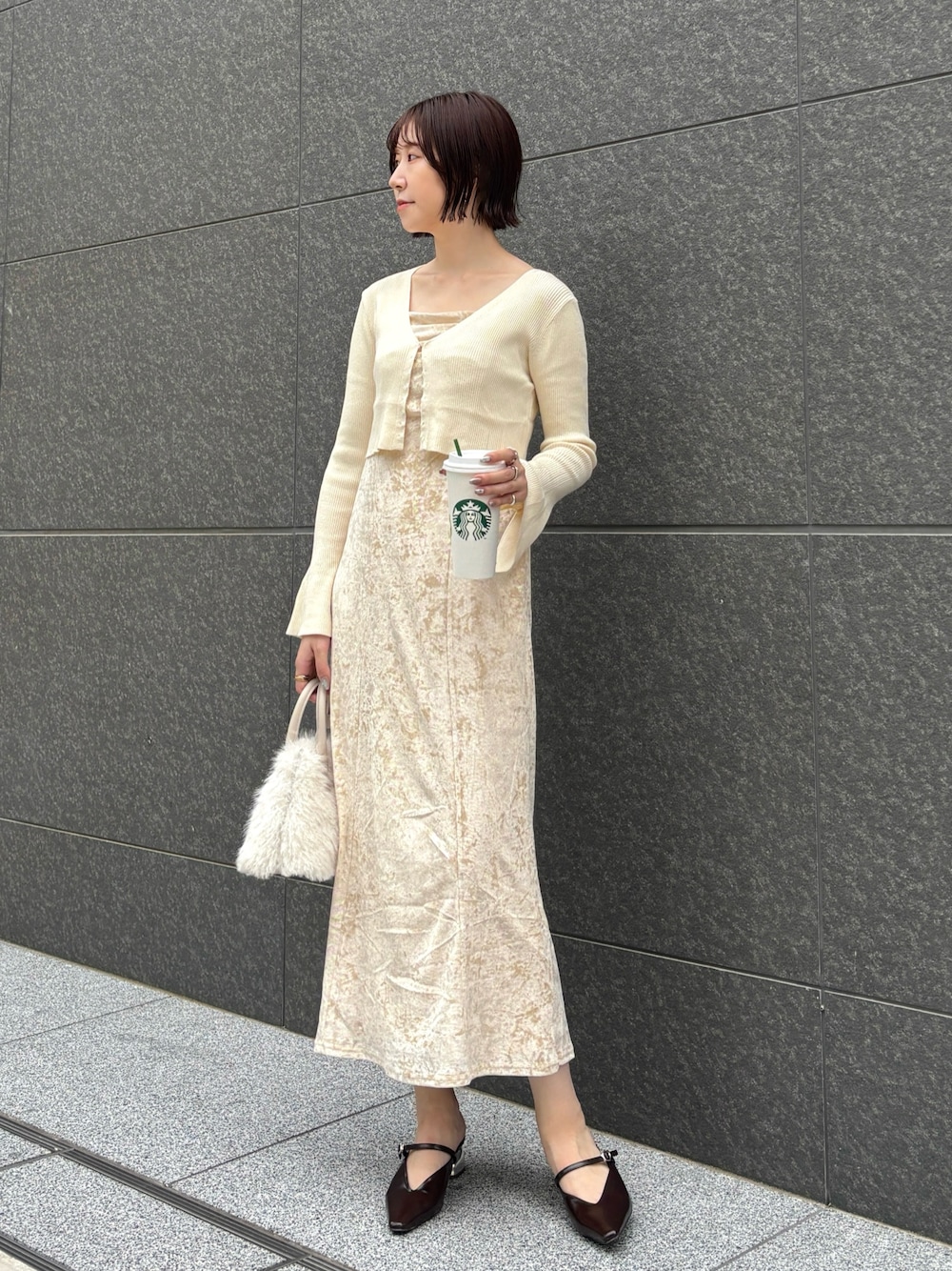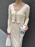 【Dress】カーディガンとキャミワンピースがセットになったアイテム 🕯️ 腰回りからくびれるマーメイドシルエットなので女性らしく綺麗めに着れます🤍 168cm →Mサイズは着丈長めなので高身長さんにはMがおすすめです✨ (キャミソール部分で長さ調節可能)