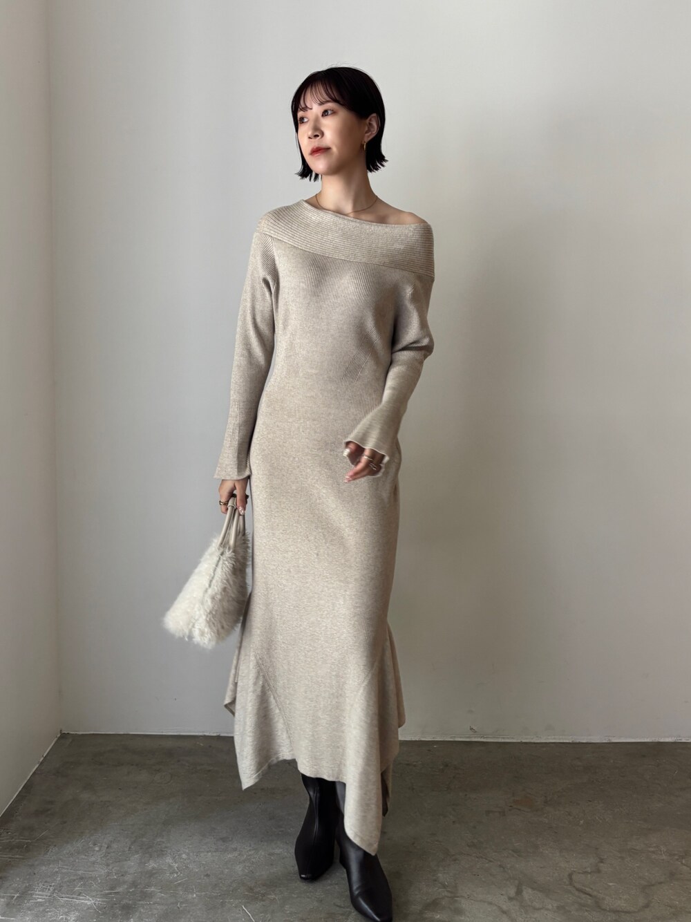 MASAKI KISE(LAGUNAMOON)のワンピース「オフショルリブニットワンピース」を使ったコーディネート