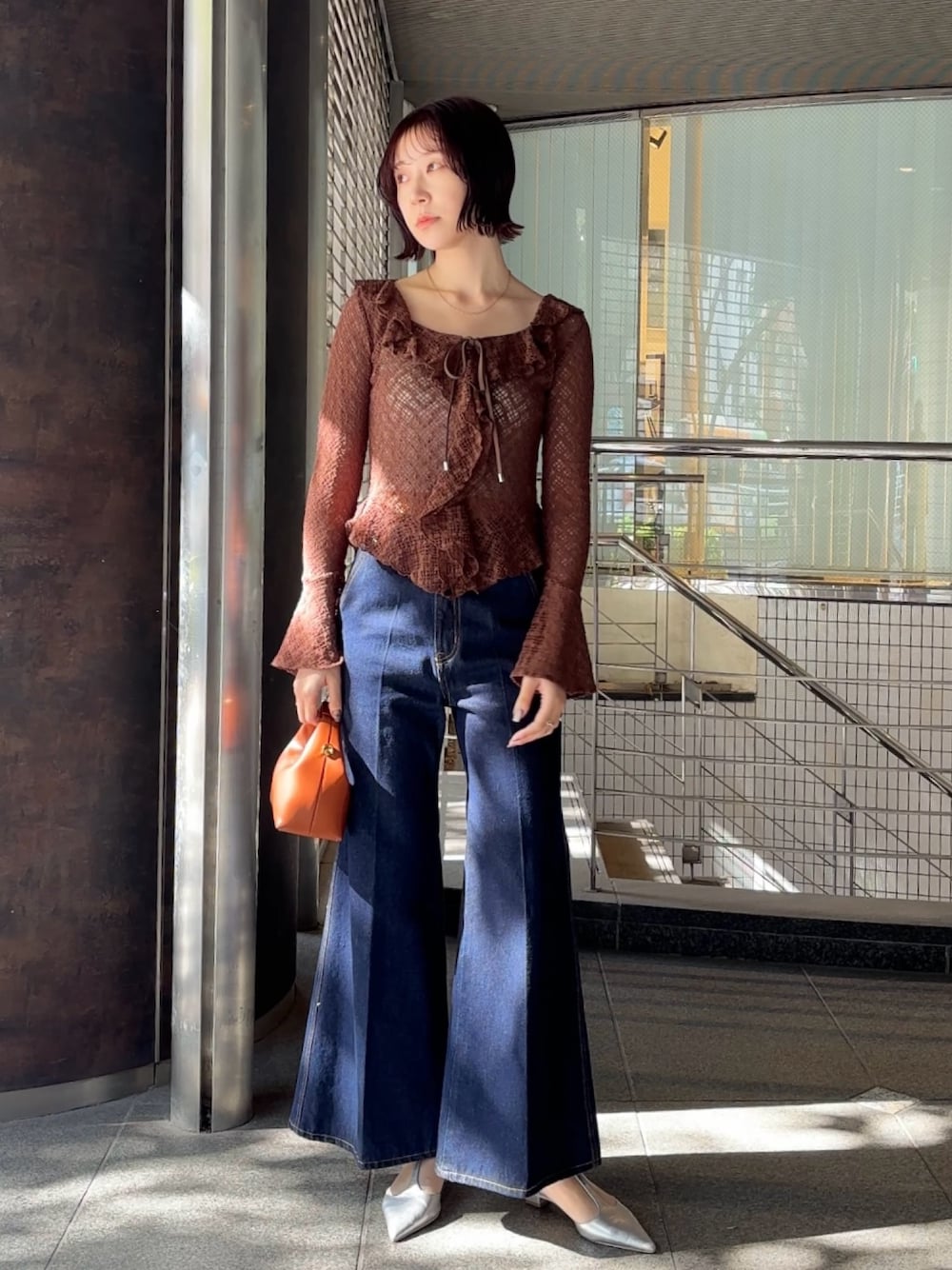 【Tops】大人可愛い素材のレースニット🍂 出しても可愛く着れるのでインするのが苦手な方にもおすすめ!! 【Pants】 168cm→Sサイズは足首が隠れる着丈でウエストはぴったりすぎず楽な着心地!! 着丈長めが好きな方はMがおすすめ!!