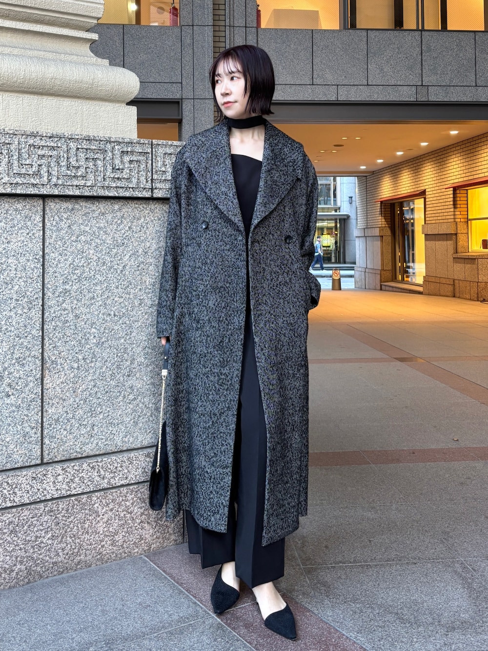【Outer】トレンド感満載のツイードコート 🩶 高級感のある素材で裏地付きなので真冬まで暖かく着れます!! 着丈長めが好きな方や分厚いニットなどを合わせたい方はMでよさそうです◎