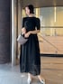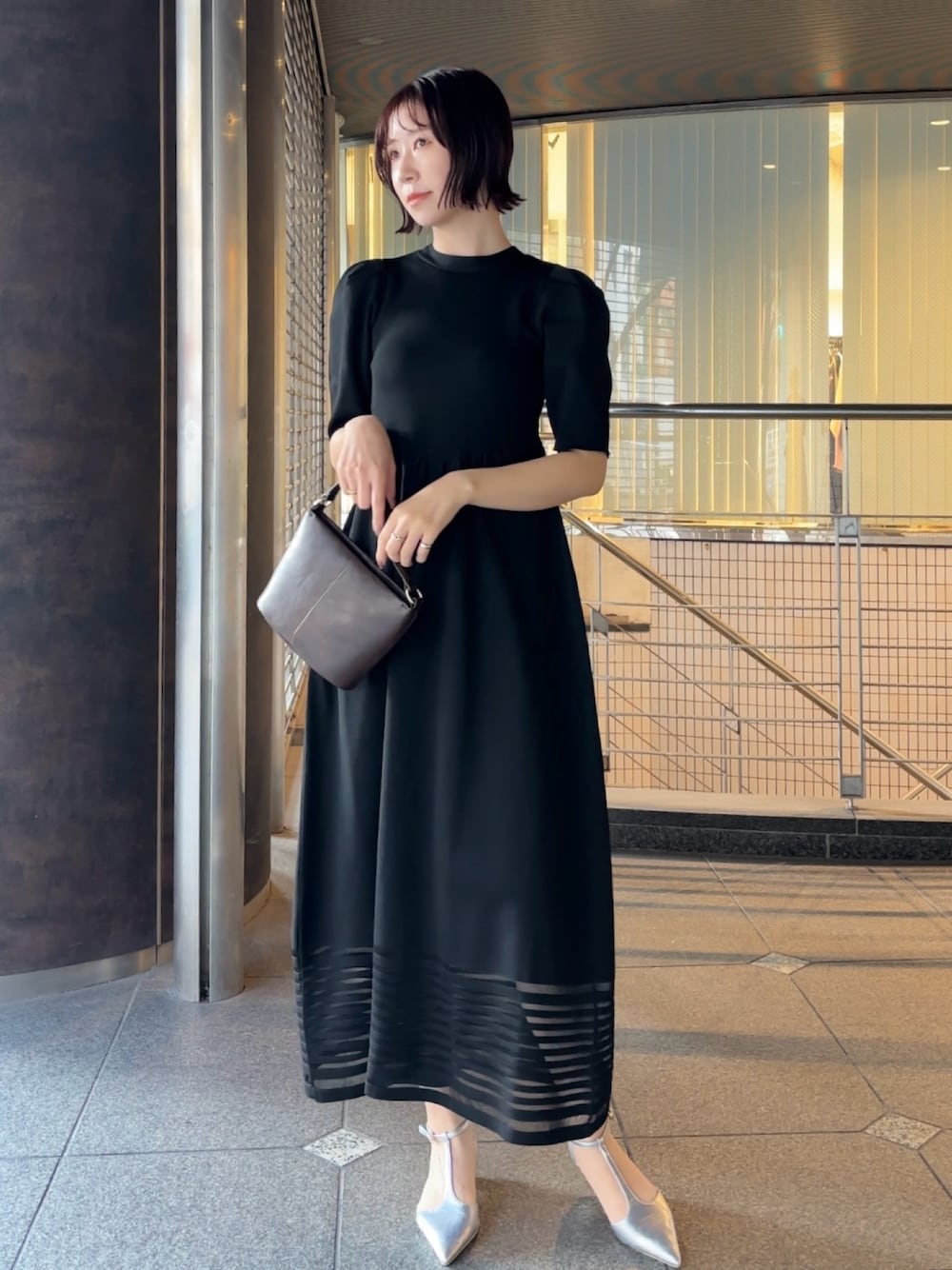 【Dress】綺麗めな予定にもおすすめのニットワンピース 🖤 立体的なフォルムニットなのでお腹周りもすっきり綺麗に着ていただけます!! サイズ感→168cm / Sサイズで足首が見える着丈でぴったり!