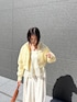 【Outer】春カラーが目を惹くブルゾン✨ ショート丈でスタイルアップ◎ フードは取り外しできるので雰囲気を変えて使っていただけます! 【Pants】ハイウエストのワイドシルエットでタックも効いているので脚長効果も抜群! シワになりにくい綺麗め素材なのでオンオフ着回ししていただけます🌿