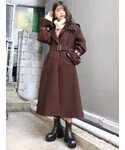 シンプルなインナーに羽織るだけでトレンドコーデが完成する今季イチオシコート♡セーラーカラーにすることでバックスタイルまで抜かりなく可愛さ満点◎全体の大人フェミニンなムードに、フェイクレザーのベルトでムルーアらしいエッジをプラス♪手首の絞ったデザインのベルトがポイントです!170cmの私がMサイズ着用で、ふくらはぎあたりの丈でした♡