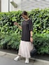 Tシャツ×プリーツスカートの大人カジュアルコーデ♡【トップス】MURUA/PUMAのコラボTシャツ♡オーバーサイズなのでゆったりと着れるのがポイント!スカートと合わせてカジュアルダウンさせるスタイリングがオススメ♪【スカート】艶っぽい光沢感のある生地を使用したプリーツスカート♪普段きれいめスカートを着ないという方でも、Tシャツと合わせるとカジュアル且つラフなコーデで着ていただけますよ♡170cmの私が着用してふくらはぎ下あたりの丈でした!
