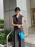 モードカジュアルコーデ♡【ロンパース】1枚で決まるロンパースを普段使いするならあえてシューズをカジュアルダウンするのがオススメ◎ハイウエスト+ベルトでスタイルアップ効果抜群!170cmの私が着てみてくるぶし上あたりの丈でした!