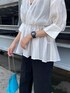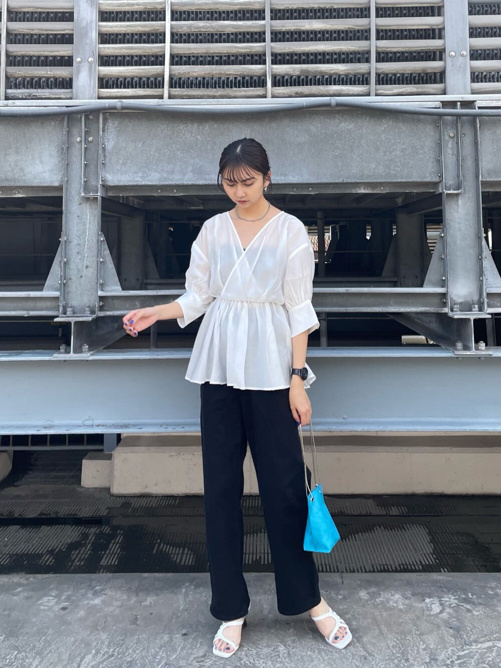 大人休日コーデ♡【シャツ】リアルバイアイテム♪ホワイトとブラック2色買いしてしまいました!カシュクールのデコルテ見せが女性らしさUP♡バックスタイルもメリハリがあって可愛い◎【パンツ】ハイウエスト×絶妙シルエットで女性らしさUP♡メンズライクなコーデにも合いそう!普段使いしやすいこのパンツは170cmの私がMサイズ着用で足首下あたりの丈でした!高身長さんでも安心♪