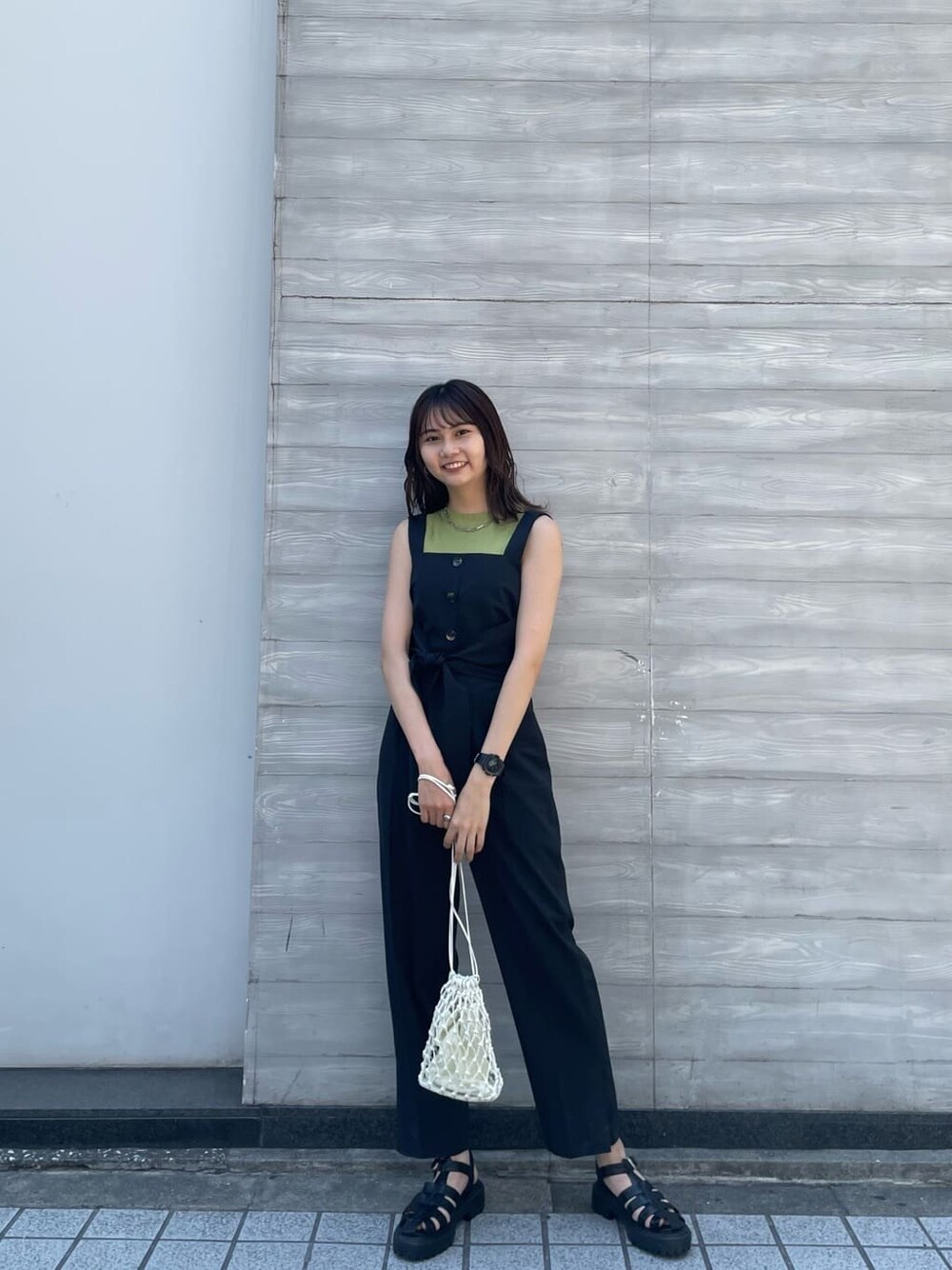 桂束咲(MURUA)のハンドバッグ「メッシュ巾着バッグ」を使ったコーディネート