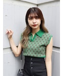 夏のモードカジュアルコーデ♡【ニット】MURUAでは珍しいモノグラムニット♡フレンチスリーブなので二の腕をカバーしてくれるのが嬉しいポイント!襟付きVネックがすっきりとした印象に◎今から1枚で着れて秋はアウターと合わせられるのでロングシーズンお使いいただけます♪【デニム】美脚効果抜群のフレアデニムパンツ!ハイウエストなので脚長効果も◎170cmの私がMサイズ着用でくるぶし下あたりの丈でした!高身長さんでも安心の丈なのでオススメ♪
