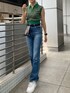 夏のモードカジュアルコーデ♡【ニット】MURUAでは珍しいモノグラムニット♡フレンチスリーブなので二の腕をカバーしてくれるのが嬉しいポイント!襟付きVネックがすっきりとした印象に◎今から1枚で着れて秋はアウターと合わせられるのでロングシーズンお使いいただけます♪【デニム】美脚効果抜群のフレアデニムパンツ!ハイウエストなので脚長効果も◎170cmの私がMサイズ着用でくるぶし下あたりの丈でした!高身長さんでも安心の丈なのでオススメ♪