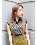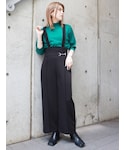 桂束咲(MURUA)のスラックス「ビットサスペンダーパンツ」を使ったコーディネート