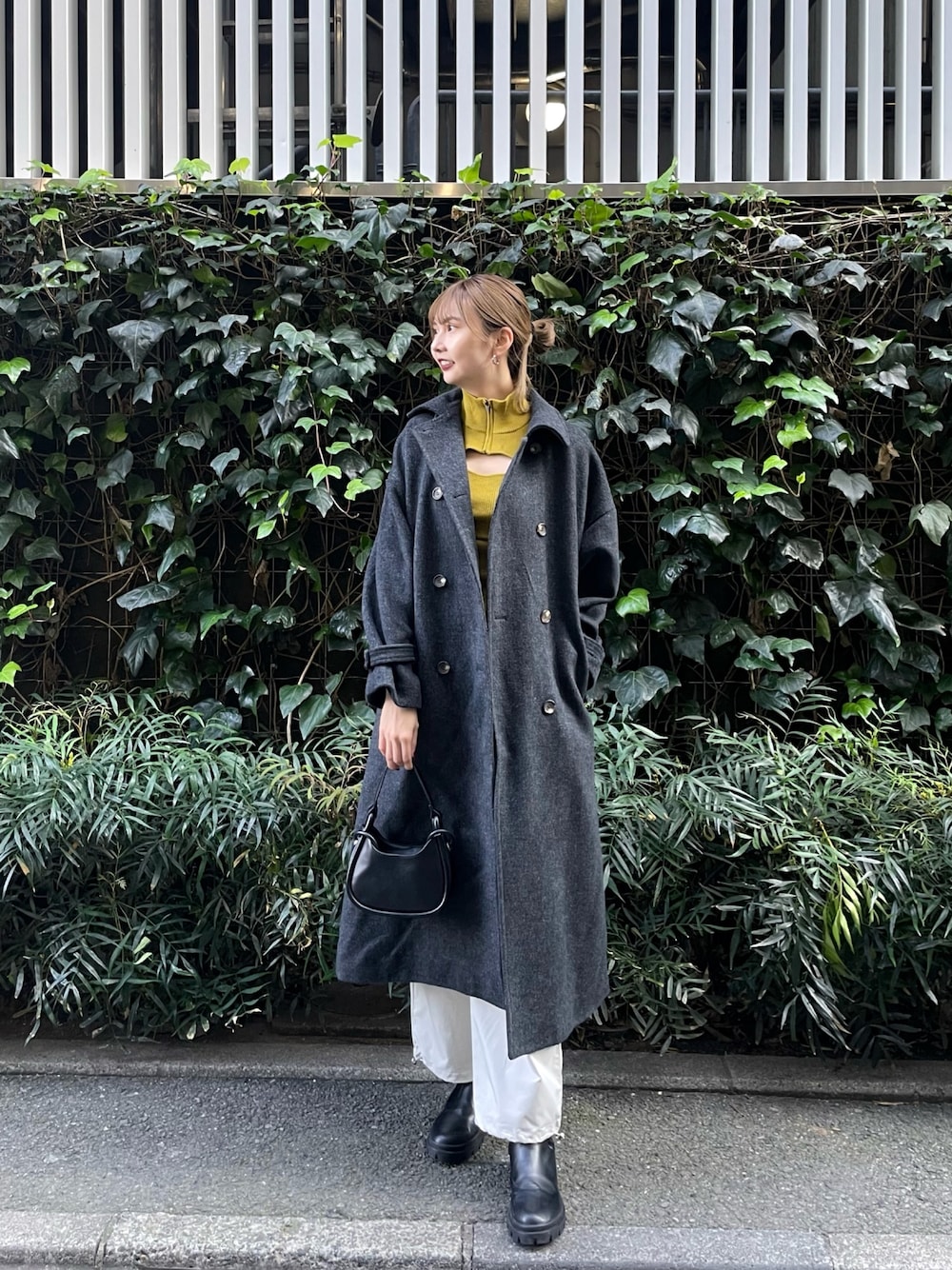 桂束咲(MURUA)のステンカラーコート「ダブルステンカラーコート」を使ったコーディネート