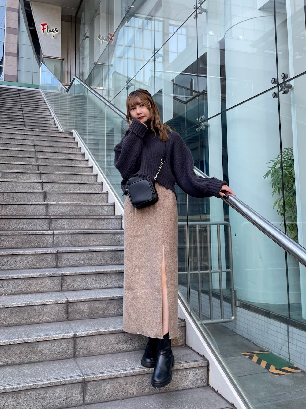 《tops》クラッシュデザインがポイントのショート丈ニット♡ショート丈なのでハイウエストボトムと合わせるのがオススメ!生地もしっかりしてるのに柔らかいから着心地も抜群♪袖は折ったりしてアクセントをつけても◎(※写真参照)《skirt》トレンドのツイード素材のIラインスカート♡サイドのスリットで軽さをプラスして脚の細見えも◎地厚な生地で冬もあったかい♡《shoes》昨年に引き続きリアルバイしました!筒が少し広めになっているのでブーツインもオススメ◎軽くて長時間履いていても本当に疲れないのでご予定に合わせて是非…♡