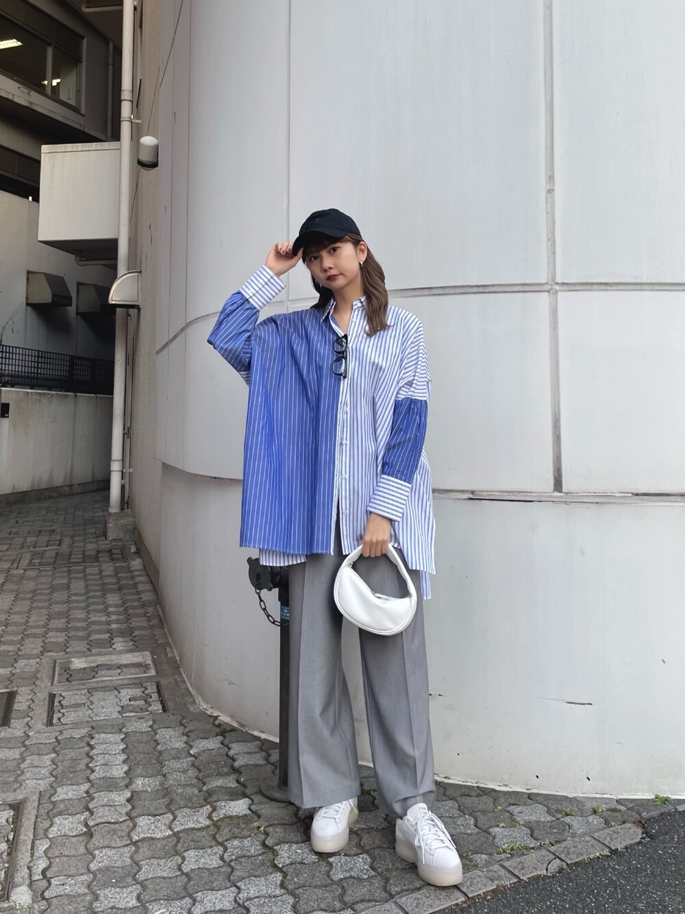 【MURUAらしさ満点カジュアルコーデ❤︎】(狙ってるアイテム集めました!)《shirt》ビッグサイズのトレンドシャツ♡ストライプ柄のミックスデザインがMURUAらしさ◎お尻が隠れる丈なので、高身長さんはあえてゆったりパンツと合わせてラフに着るのもオススメ!《pants》トレンドのベーシックなローライズパンツ♡コンパクトトップスと合わせると一気にオシャレ見え♪170cmの私がSサイズ着用で足首あたりの丈でした!《shoes》PUMAコラボ♡フェミニンなベージュトーンのカラーと厚底のガムソールがポイント♪ソールに厚みがあるので歩きやすい+スタイルアップ効果◎《cap》大人気ニューエラとのコラボロゴキャップ♡ロゴはMURUAの頭文字をとっていて同系色なので合わせやすいです!《bag》トレンドのハーフムーンバッグ♪ワンハンドルでミニマルな作りがカワイイ♡カジュアルコーデやモードコーデとマッチ◎