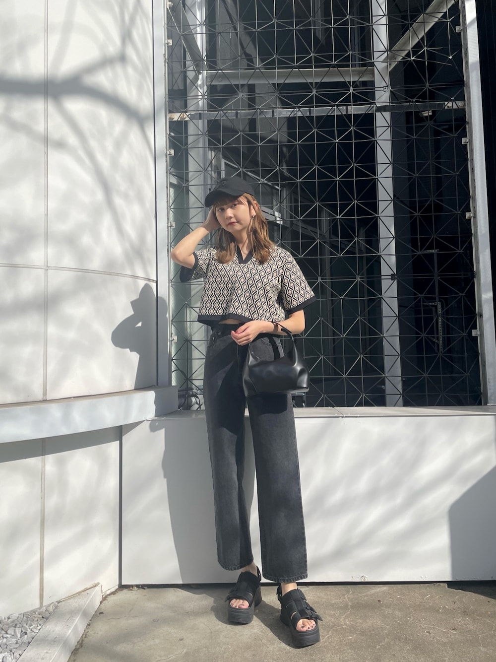 【SS休日スポーティコーデ❤︎】《tops》オリジナルのMURUAのモノグラム柄がポイント♡レトロ感のあるニットポロが今年らしさ◎ショート丈なのでハイウエストボトムとの相性抜群!《pants》程よいゆるっとしたシルエットで履きやすさ◎ハイウエストなのでショート丈のトップスやINスタイルがオススメ!170cmの私がSサイズ着用で足首あたりの丈でした!高身長さんはMサイズもオススメ♪《shoes》MURUA×SHAKAのコラボサンダル♪ボリューム感のあるチャンキーソールで存在感抜群!クッション性があって履きやすさ◎普段24.5を履いていますが25cmでちょうど良いサイズでした!
