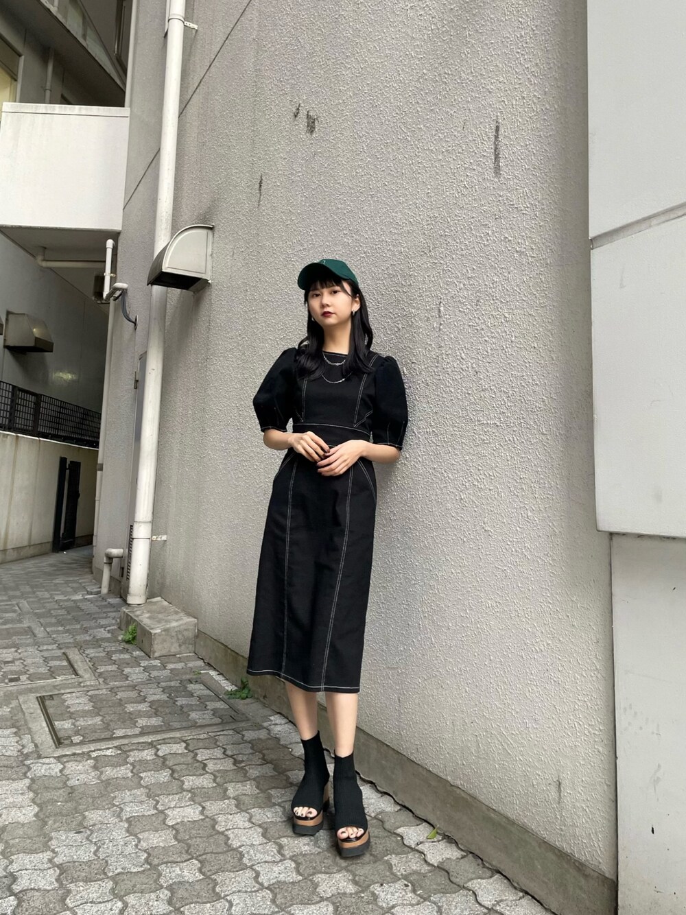 《one-piece》大人カジュアルなステッチワンピース♡ギャザースリーブがポイントでウエストベルトが太めなので脚長効果&細見え◎ストレッチがあるので着心地も抜群です♪《shoes》リブ使用のウェッジブーツ♡足首までホールドされてるので安定感と細見え◎後ろにジップがついてるので着脱しやすいのも嬉しいポイント!《cap》大人気ニューエラとのコラボロゴキャップ♡ロゴはMURUAの頭文字をとっていて同系色なので合わせやすいです!