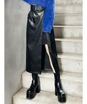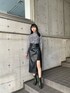 《tops》シーズンレスでトップス、インナーとして着回しができる便利アイテム◎MURUAらしいジオメトリック柄がポイント!着心地は柔らかくストレッチ性があるのでストレスフリーで着れます♡透け感があるのでお持ちのキャミソールと合わせていただくのがオススメです♪《skirt》MURUA定番のラップスカートをトレンドのフェイクレザーでモード感あるアイテムになって再登場!今回はモノトーンのジオメ柄のシアートップスと合わせてクールに決めてみました♡中にミニスカートがついていてサイドは足が程よく隠れるのでミニ丈苦手な方でも挑戦しやすいです◎170cmの私がSサイズ着用でふくらはぎ下あたりの丈でした!
