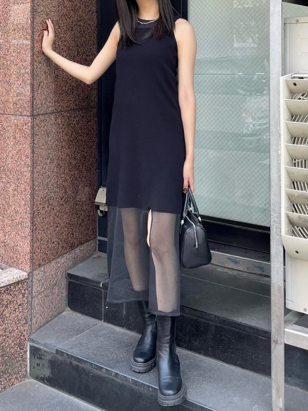 桂束咲(MURUA)のワンピース「シアーニットキャミワンピース」を使ったコーディネート