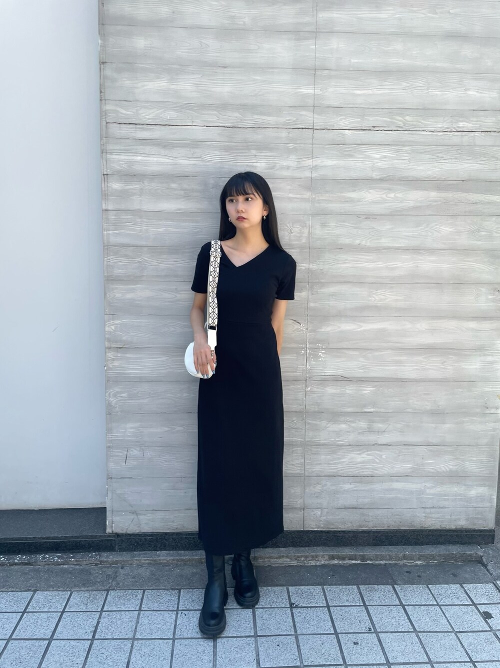 《one-piece》バックオープンデザインがポイントのワンピ♡フロントデザインもシンプルながらアシメネックなので360°可愛いアイテムです♪裾にはスリットがロング丈でも歩きやすく抜け感も演出◎170cmの私が着用してみて足首上あたりの丈でした!