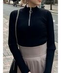 春スポーティコーデ♡【tops】トレンドのハーフジップニット。伸縮性のあるニットで着心地◎リブデザインなので細見えもしてくれます。【pants】ムルーアらしいこだわりの2WAYパンツ。ウエスト部分は取り外しができ、フロントのタグも前後どちらでもお使いできます◎裾は絞ることもできるのでショートブーツ合わせなどオススメです。