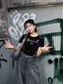 【tops】スポーティな印象のロゴトップス。伸縮性が良いので着心地◎腰骨のあたりまで丈があるのでインスタイルもできます。【pants】ウエストのホックデザインがポイントのワイドデニム。ホックは2段階でウエスト調節ができます。生地も柔らかく軽めで着れるので夏大活躍すること間違いなしです!