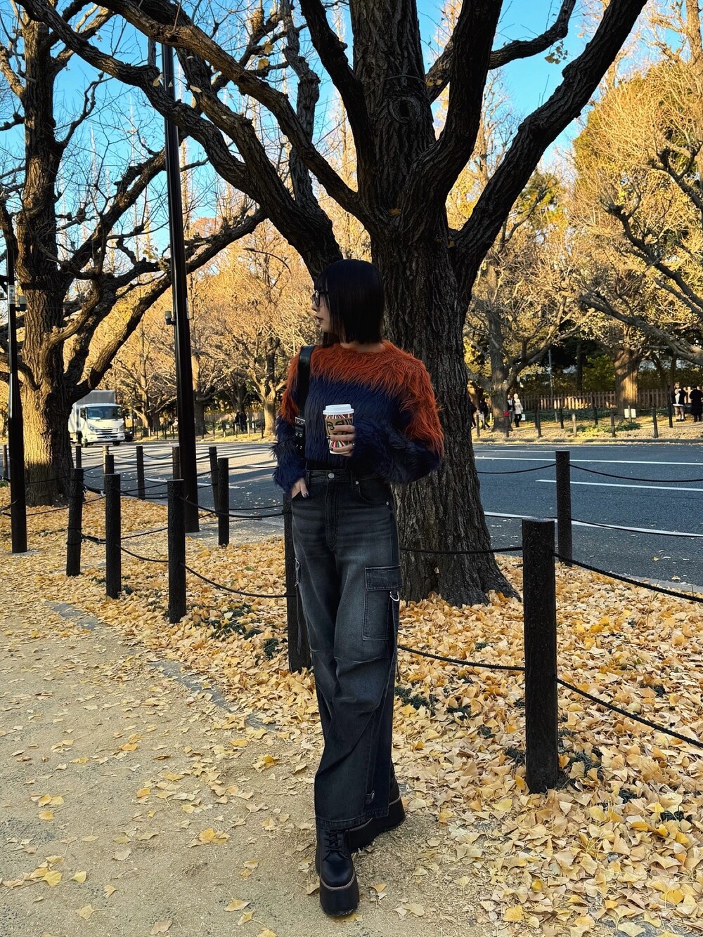 《tops》毎年大人気のシャギーニットがボーダーになって登場!短めの丈でもたつかず、どんなボトムにも合わせやすいサイズ感になってます。ムルーアにしかない配色なので唯一無二のコーデになります。《pants》カーゴデザインの2wayデニム。裾のボタンで絞ることもできます。軽くて柔らかい履き心地なので動きやすさも◎170cmの私がMサイズ着用でくるぶしあたりの丈でした。《shoes》大人気の厚底レースアップブーツ。バイカラーのラインが目をひくデザイン。厚底なのに軽くて安定感抜群なので疲れにくいのもポイント。