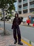 《jacket》トレンドのデニムにフロッキー加工を施したデニムジャケット。ベルベット見えする生地やところどころにスタッズでトレンド感満載のジャケット。同素材のボトムスとのセットアップ合わせが今季イチオシコーデです。《pants》MURUA大人気のバレルレッグデニム。裾部分にはスナップボタンをつけており、足元のシルエットを変化させられるのも嬉しいポイント。170cmの私がSサイズ着用で足首あたりの丈でした!