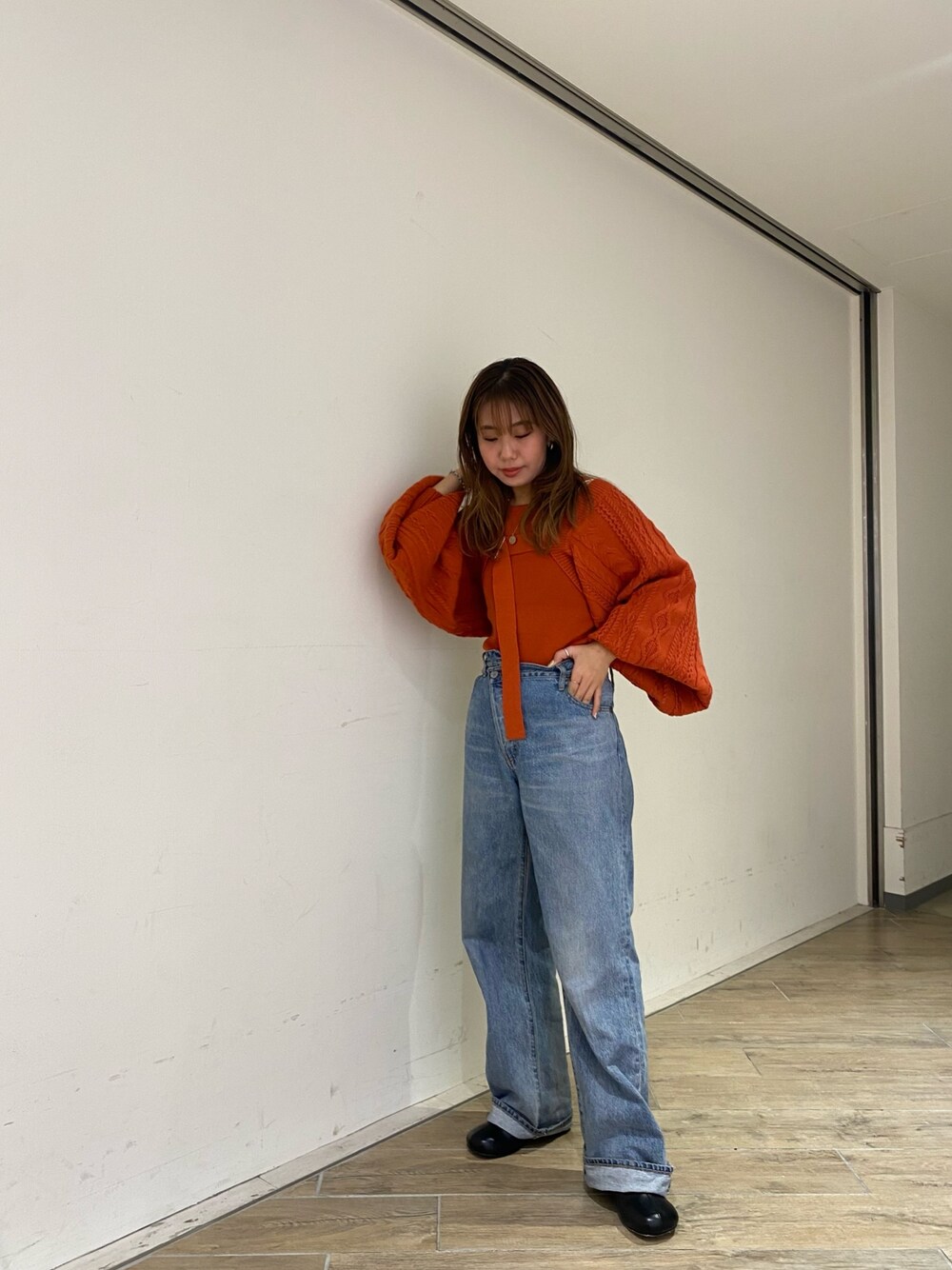 ☑︎カラーニットコーデ" 【トップス】 ボリュームニットとタンクがセットになったボレロニット🧶♡胸元に調節できる紐をつけているので肩の位置もアレンジして着て頂けます🪞どちらも別々でお使い頂けるので着回しも抜群です☑︎ 【パンツ】 大胆なリメイクデザインが特徴的なデニムです👖🤎ずっと大人気のデニムデザイン!🪞フロントがアシメになってて足長効果抜群!バックスタイルもとにかく可愛いです☑︎ 153cmで24インチを着用していて、フラットサンダルで少しもたつく丈感です!裾をロールアップしても可愛いので気になる方は少し折り返して頂くとスッキリ履いて頂けます🙆🏼♀️ 【ブーツ】 まるみのあるトゥがポイントのブーツ カジュアルなムードにどんなコーデにも合わせて頂きやすいです🙆🏼♀️