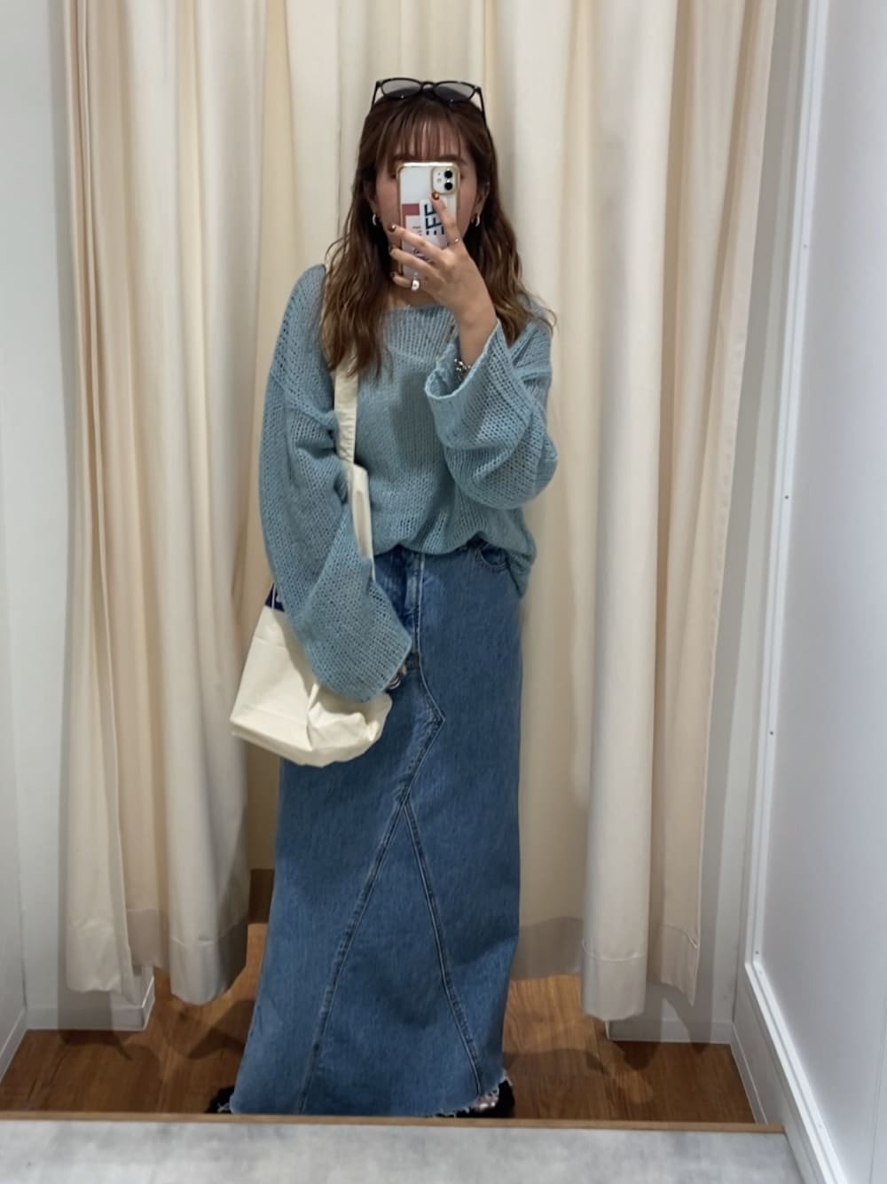 中井菜摘(Ungrid)のニット/セーター「透かし編みル-ズニット」を使ったコーディネート