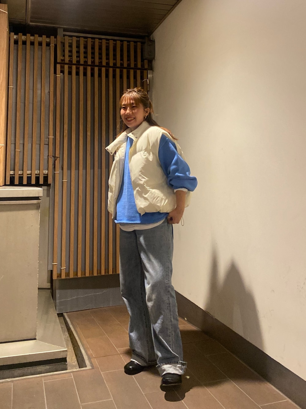 ☑︎ダウンベストコーデ 今年も引き続きトレンドのダウンベストをカラーで合わせてとことんカジュアルに合わせました☑︎🩵 【アウター】 ボリューム感が可愛い中綿ベスト🐻❄️ とにかく軽くて可愛い!!! 丈間もスッキリめなのでボリュームはしっかりありますが、低身長さんでもバランスとって頂きやすいです🙆🏼♀️アームホールも広めなのでスウェット、ニットごわつかずに着て頂けます🤝🏼今年、ダウンベストはマストアイテムです☑︎🩷 【ニット】 毎年大人気のニット🧶♡ 今季のカラーバリエーションも本当に可愛く何枚も持ってても間違いなしのアイテムです🪞インスタイルが苦手な方でも裾のデザインが可愛いので、そのまま着て頂いてもバランスとりやすくなっております🧺スカート合わせもオススメです☑︎ 【パンツ】 大胆なリメイクデザインが特徴的なデニムです👖🤎ずっと大人気のデニムデザイン!🪞フロントがアシメになってて足長効果抜群!バックスタイルもとにかく可愛いです☑︎ 153cmで24インチを着用していて、フラットサンダルで少しもたつく丈感です!裾をロールアップしても可愛いので気になる方は少し折り返して頂くとスッキリ履いて頂けます🙆🏼♀️ 【ブーツ】 まるみのあるトゥがポイントのブーツ カジュアルなムードにどんなコーデにも合わせて頂きやすいです🙆🏼♀️