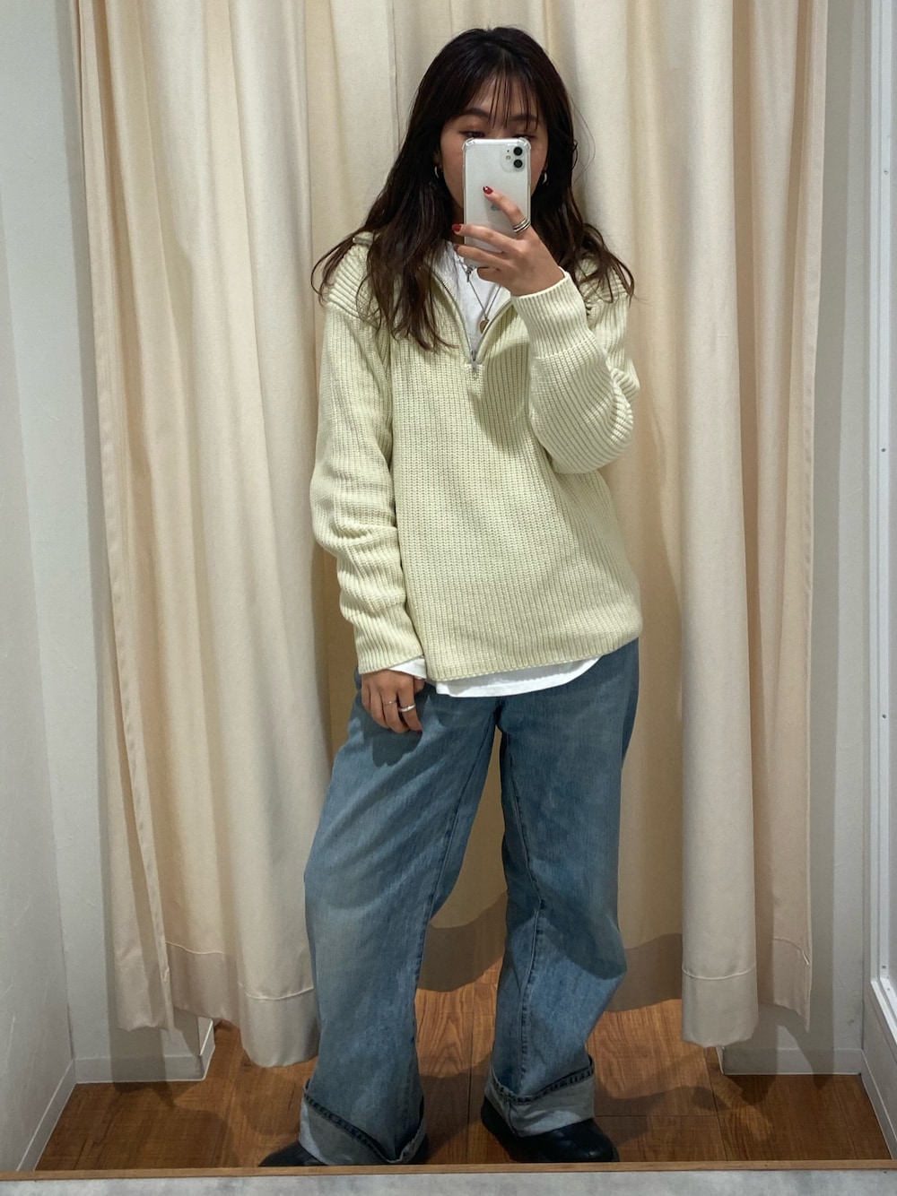 中井菜摘(Ungrid)のニット/セーター「ハーフジップルーズニット」を使ったコーディネート