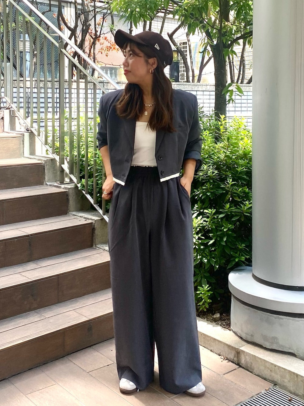 【ジャケット】 1枚で様になるジャケット👔🩶 ショート丈なので、ボリュームのあるボトムス合わせも可愛いですし、ワンピースやスカート合わせもおすすめです🙆🏼♀️腕周りはゆったりしてるので、秋もしっかり着込んで頂けます👍🏼 【パンツ】 セットアップで着用可能🙆🏼♀️ 総ゴムなのでとても履きやすく、S.Mとサイズ展開があるので153cmでSサイズを着用してます!スニーカーで履いて頂ける丈感なので小柄さんにもおすすめのパンツです✔️ 【キャップ】 毎回大人気のneweraとの別注コラボ🧢 後ろでサイズ感も調節でき、 カラー展開も沢山あるのでどんなお洋服にも合わせて頂きやすいです✔️