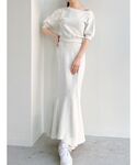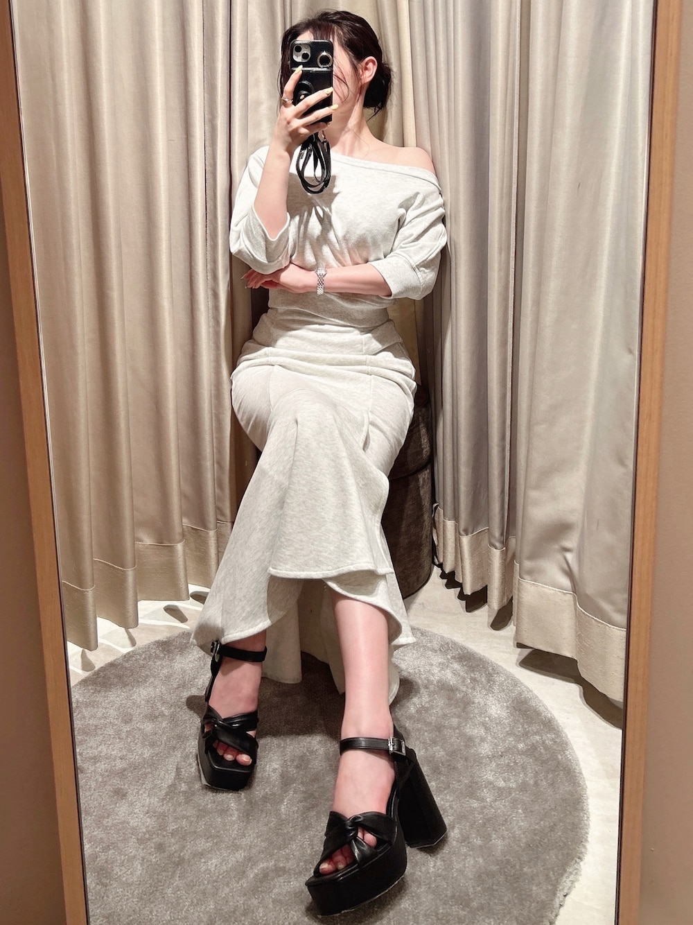スウェット素材ですが、ワンショル×マーメイドシルエットでラフ過ぎず着用できるセットアップ♪