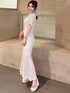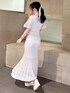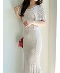 透け感あるクロシェデザインで夏シーズンぴったりのワンピース! フレアの袖とマーメイドで女性らしく着ていただけます♡