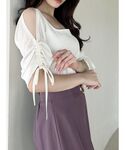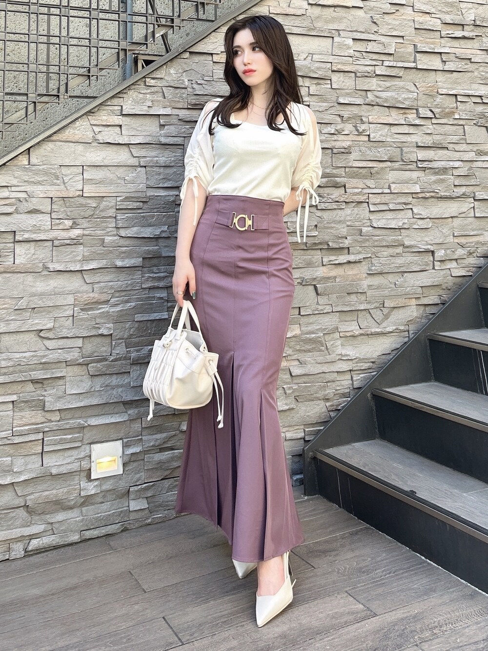 チラッと肌見せできるトップスと程よくタイトなマーメイドスカートで綺麗めデートコーデ♡ カラーものはホワイトで合わせるとコーデしやすいです♪
