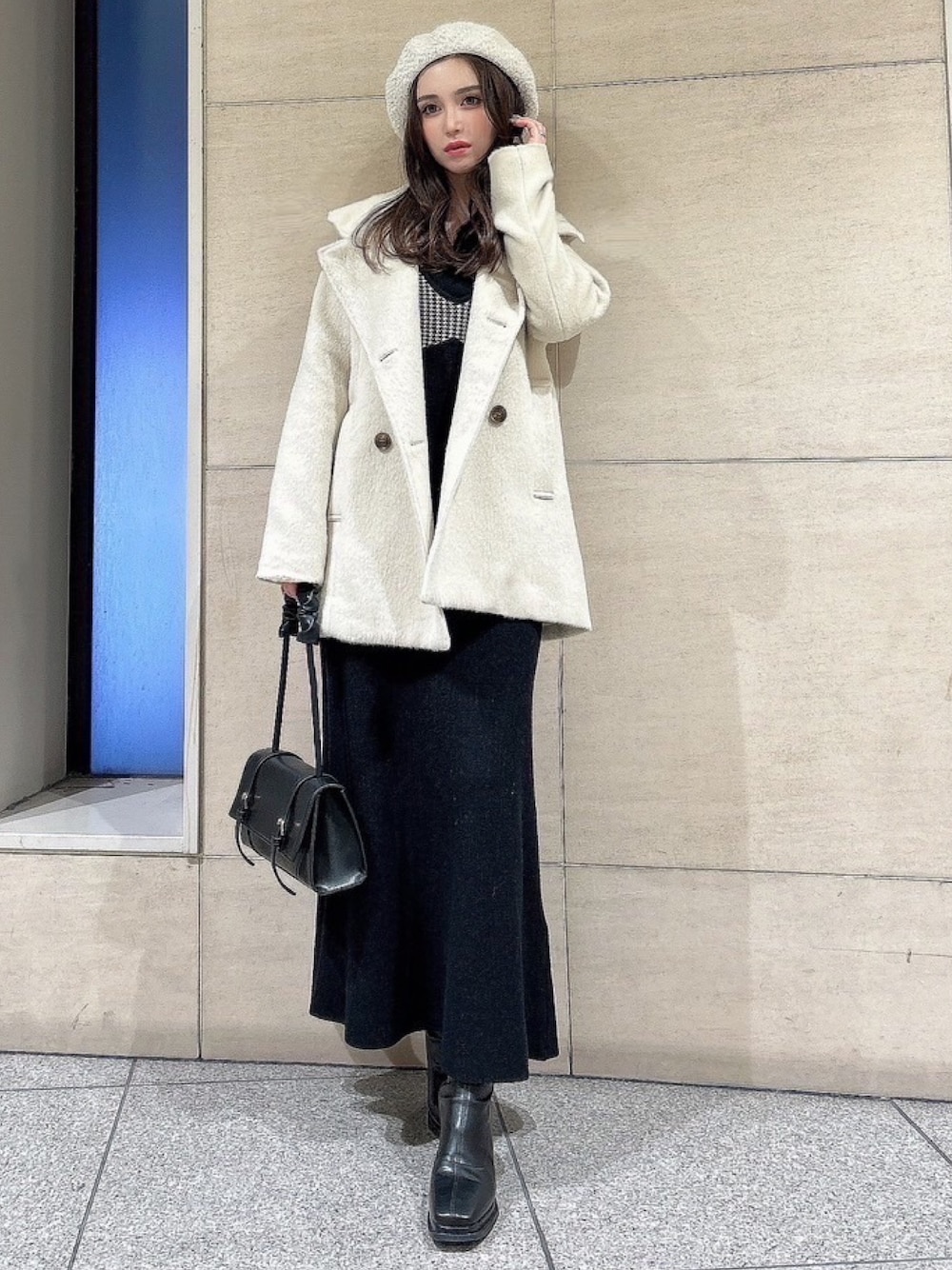 SANA(RESEXXY)のピーコート「ビッグカラーショートコート【セットアップ着用可能】」を使ったコーディネート