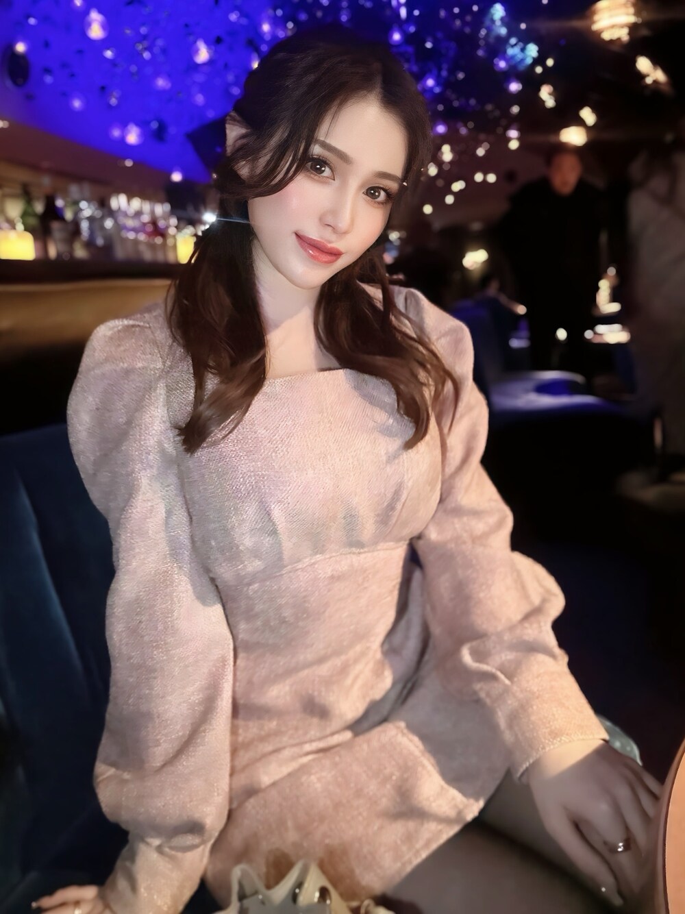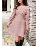 細かいツイード生地でお上品な印象に♪ スクエアネックでデコルテもスッキリ見え、ハイウエストの切り替えとウエストの部分がよりタイトになっている事でかなり細見え、足長効果でスタイルUP!♡